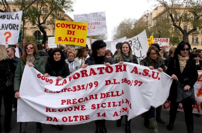 PALERMO – “Nessun passo in avanti è stato fatto in queste settimane sulla vertenza dei lavoratori Asu siciliani, come era prevedibile dopo la convocazione del presidente della V Commissione dell’Assemblea regionale siciliana Luca Sammartino. Tutto è immobile, per questo proclamiamo una settimana di sciopero a partire da martedì 9 aprile”. Lo dicono in una nota congiunta Ale Ugl Sicilia, Sinalp e Confintesa. “Siamo di fronte ad una gravissima indifferenza mostrata dall’Ars – continuano – dove giacciono diverse proposte di legge sulla stabilizzazione di questi lavoratori. Lavoratori che da 20 anni, in cambio di un’indennità che non supera i 600 euro, senza contributi e diritti, lavorano alla stregua dei dipendenti pubblici”. “Siamo grati ai sindaci – spiegano – che da mesi sono al nostro fianco nel sollecitare l’intervento delle istituzioni regionali e nazionali. Abbiamo però bisogno del sostegno di tutti gli amministratori locali prima possibile ed in maniera incisiva. Quella degli Asu, infatti, non è soltanto la battaglia personale dei lavoratori per il riconoscimento del loro diritto ad avere un lavoro dignitoso, ma è anche quella per il buon funzionamento degli Enti locali. Auspichiamo l’intervento del governo nazionale”. “Se non avremo risposte – concludono – andremo avanti ad oltranza con scioperi e manifestazioni, anche se questo comprometterà l’operatività degli uffici. La vertenza deve essere risolta”.
