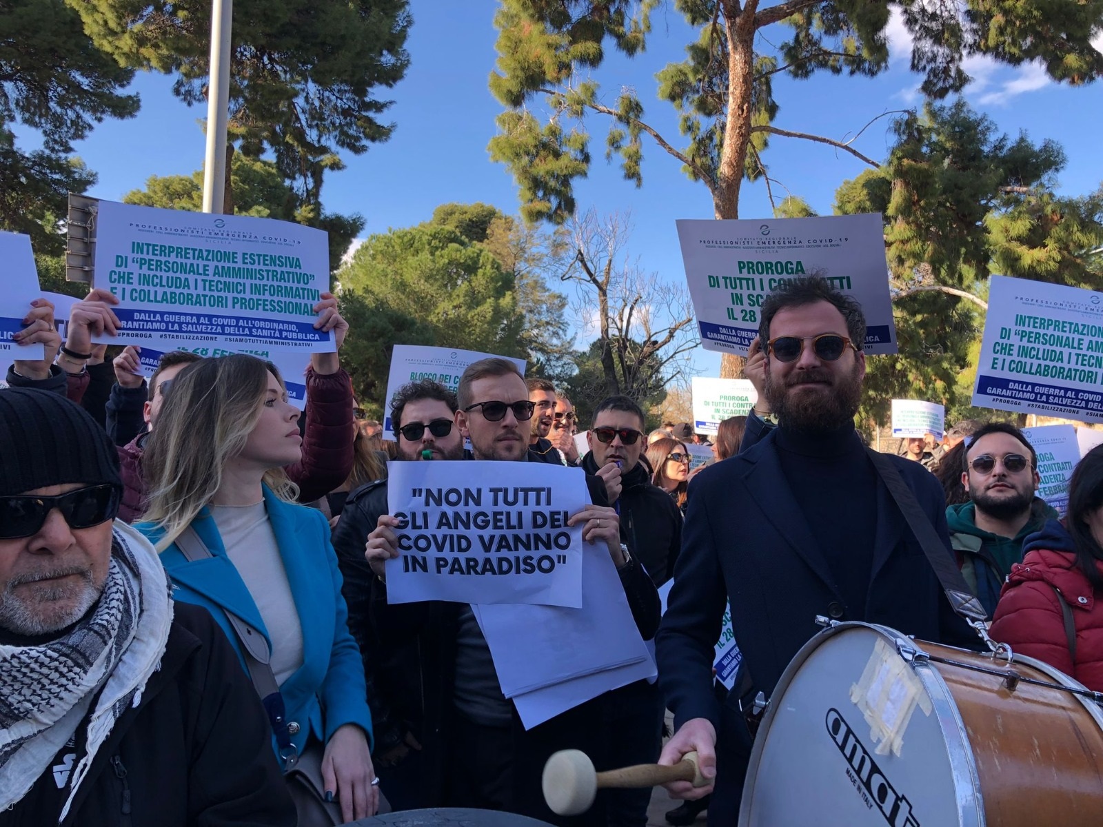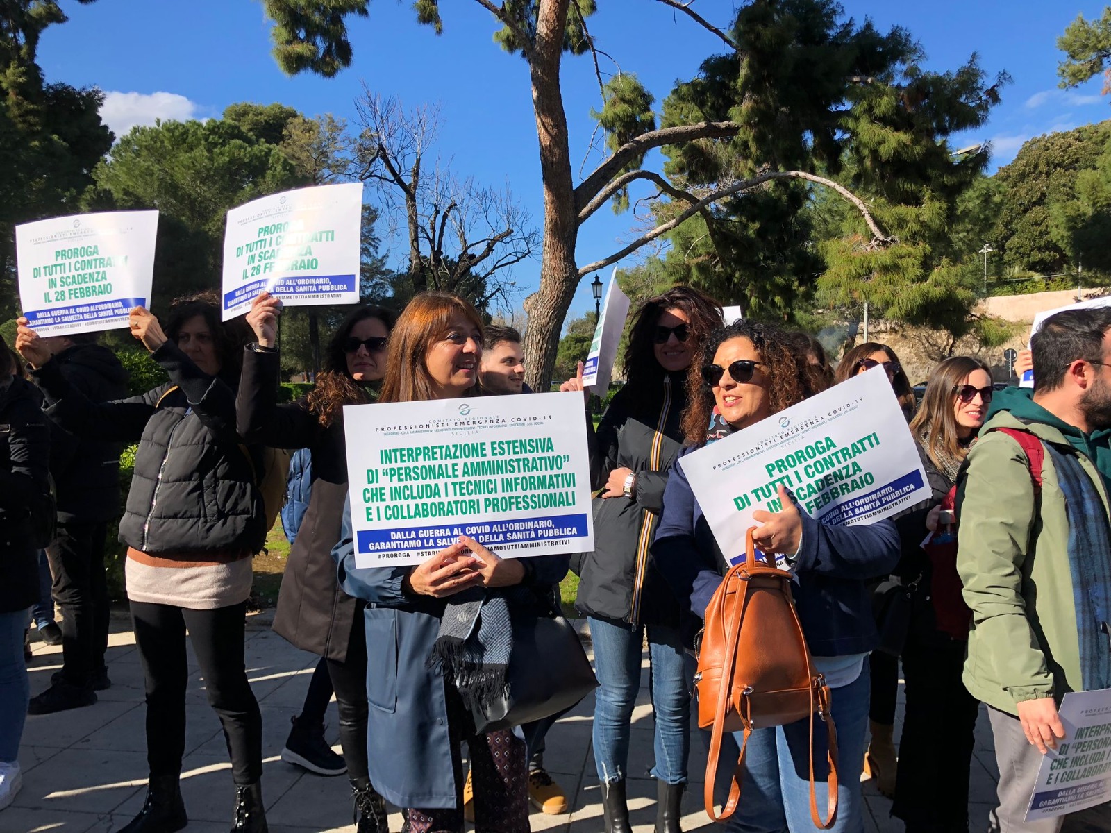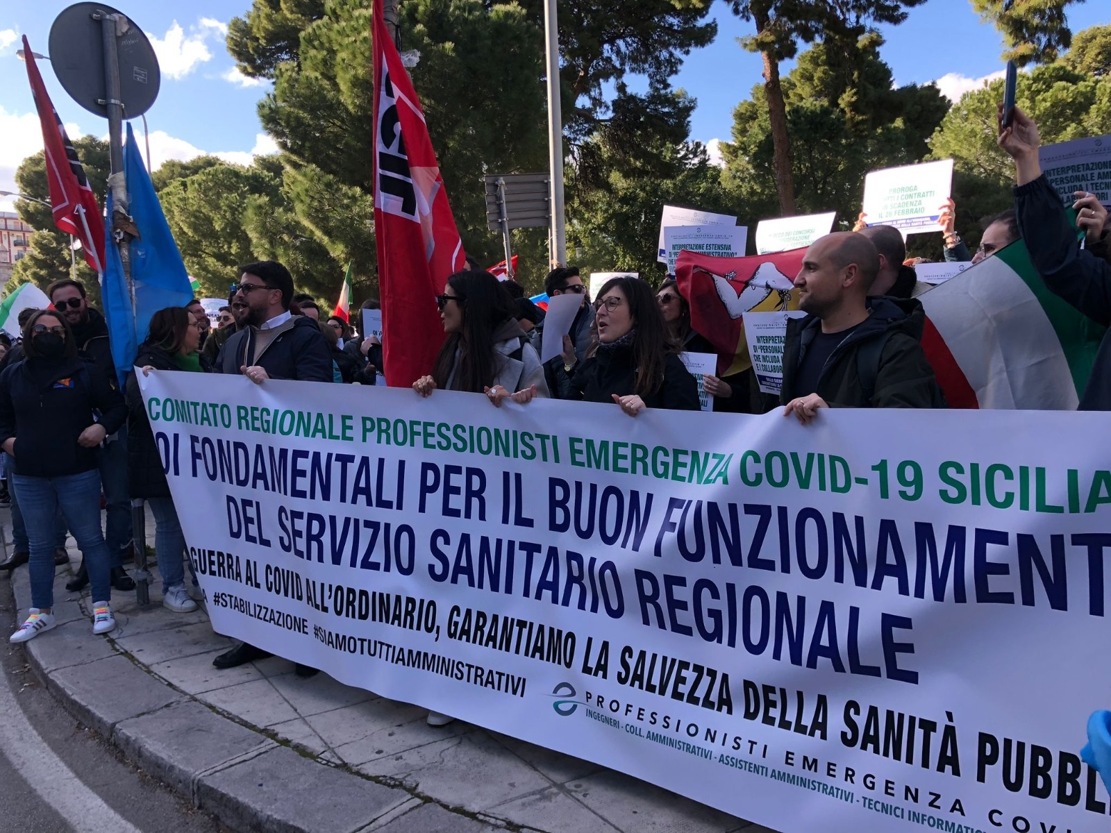 Stamattina sempre per la stabilizzazione del personale precario c’è stata una manifestazione davanti Palazzo d’Orleans indetta dai sindacati, oltre 500 i contrattisti presenti: «Da eroi a lavoratori dimenticati e dal 1 marzo senza lavoro. Si trovi un percorso di stabilizzazione per tutto il personale, oltre duemila lavoratori del comparto tecnico e amministrativo assunti durante l’emergenza Covid – così i segretari regionali di Nidil Cgil, Andrea Gattuso, Felsa Cisl, Giuseppe Cusimano, e UilTemp Sicilia, Danilo Borrelli oggi in piazza, davanti a Palazzo d’Orleans, insieme ai circa 500 precari – Questi lavoratori altamente professionalizzati negli ultimi anni due anni, con grande senso del dovere e al pari del personale sanitario, hanno servito il Paese mettendo in sicurezza le nostre comunità. Hanno garantito i servizi ordinari e straordinari delle aziende, hanno contribuito al miglioramento dell’assistenza al cittadino e lavorato per una sanità pubblica, gratuita e votata all’erogazione di prestazioni di qualità. Oggi, a causa di una mancanza di strategia organizzativa e di una visione di lungo periodo queste professionalità rischiano di disperdersi e la macchina amministrativa della sanità di collassare nuovamente proprio con l’arrivo dei fondi del Pnrr. Ci troviamo di fronte ad una gravissima ingiustizia nei confronti del personale tecnico, lasciato fuori da ogni previsione sia di proroghe che percorsi alternativi per l’internalizzazione dei servizi. Non si capisce perché gli amministrativi vengano inseriti nel Mille Proroghe e il personale tecnico-informatico no. Non possiamo accettare disparità di trattamento».