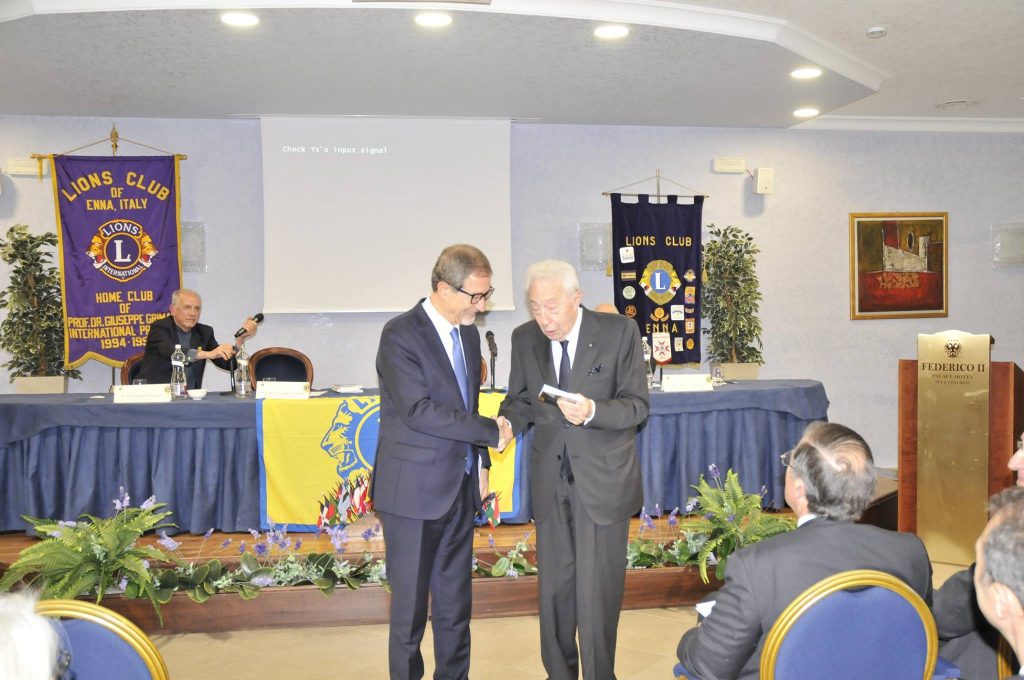 Infine, a testimoniare l’affetto e la stima nei confronti del professore Grimaldi, oltre al sindaco di Enna, Maurizio Dipietro, sono intervenuti: Sandro Castellana, direttore internazionale, componente Comitato esecutivo Lci, il presidente del Consiglio dei governatori, Alberto Soci, il Past direttore internazionale, Domenico Messina, il governatore Distretto 108YB, il Past presidente del Consiglio dei governatori, Salvatore Giacona, e non ultimo la presidentessa in sede Bianca Pellegrino e il Past governatore, Rosario Pellegrino.
