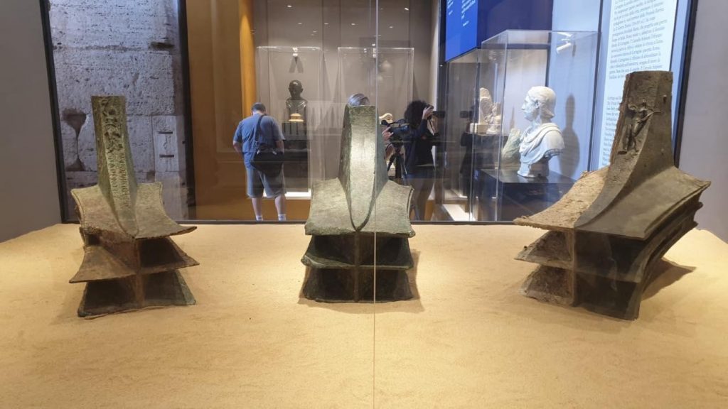 Come forma di compensazione per il prestito, il Parco archeologico del Colosseo ha messo a disposizione i tecnici dell’Istituto superiore per la conservazione e il restauro per tutti gli interventi necessari all’esposizione di alcuni reperti: il rostro bronzeo denominato “Egadi XVIII” della Soprintendenza del mare; la dotazione di bordo della nave punica di Marsala – Punta Scario del Museo Lilibeo (comprendente parte della struttura della nave, tre cime in sparto, un tappo in sughero per anfora, un’olla da cucina, una coppa a vernice nera, un bicchiere, resti faunistici e ramoscelli di una pianta); una trapeza (tavola) in marmo con iscrizione punica della Soprintendenza dei beni culturali di Trapani.