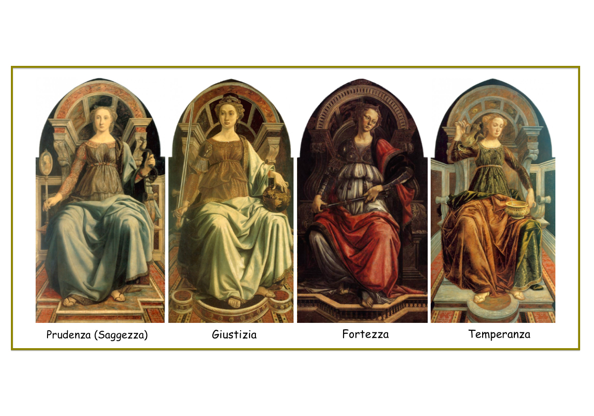 Le quattro Virtù cardinali, come è noto, sono Saggezza, Temperanza, Fortezza e Giustizia. Chi dei viventi le possiede? Probabilmente non molti, non perché non sia possibile averle, ma perché per praticarle ci vogliono conoscenza, intelligenza e volontà.
