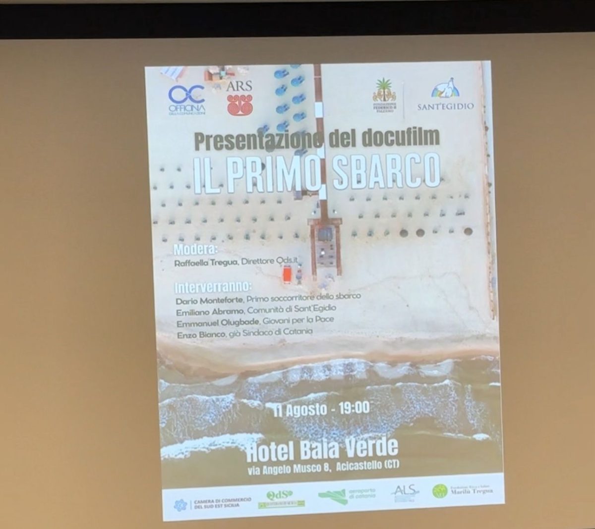 Una serata emozionante, intrisa di significato e dall’alto profilo sociale e soprattutto umano. Al Grand Hotel Baia Verde di Aci Castello è stato presentato “Il Primo Sbarco“, docufilm promosso dalla Comunità di Sant’Egidio e prodotto da Officina della Comunicazione. Il documentario, ispirato dal lavoro di ricostruzione di Emiliano Abramo e diretto da Omar Pesenti, racconta la stagione dell’accoglienza in Sicilia a partire dalla tragedia avvenuta Catania 12 anni fa, il 10 agosto 2013. nel quale perirono sei giovani egiziani, giunti senza vita sul litorale della Plaia.