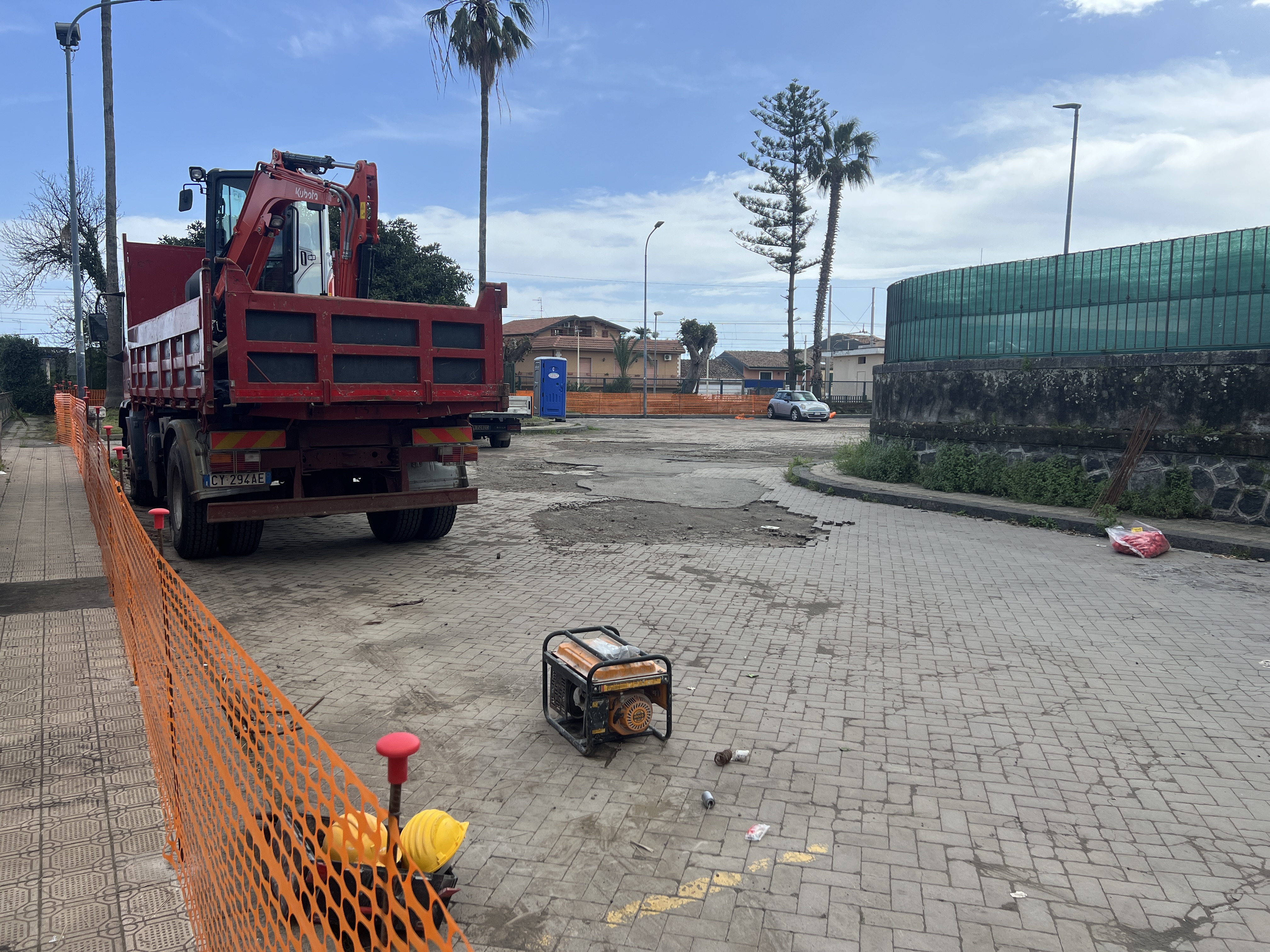 Dopo la sostituzione dei corpi illuminanti, nuovi interventi di restyling sono stati avviati questa mattina in piazza Stazione a Carruba (Riposto, Catania).
