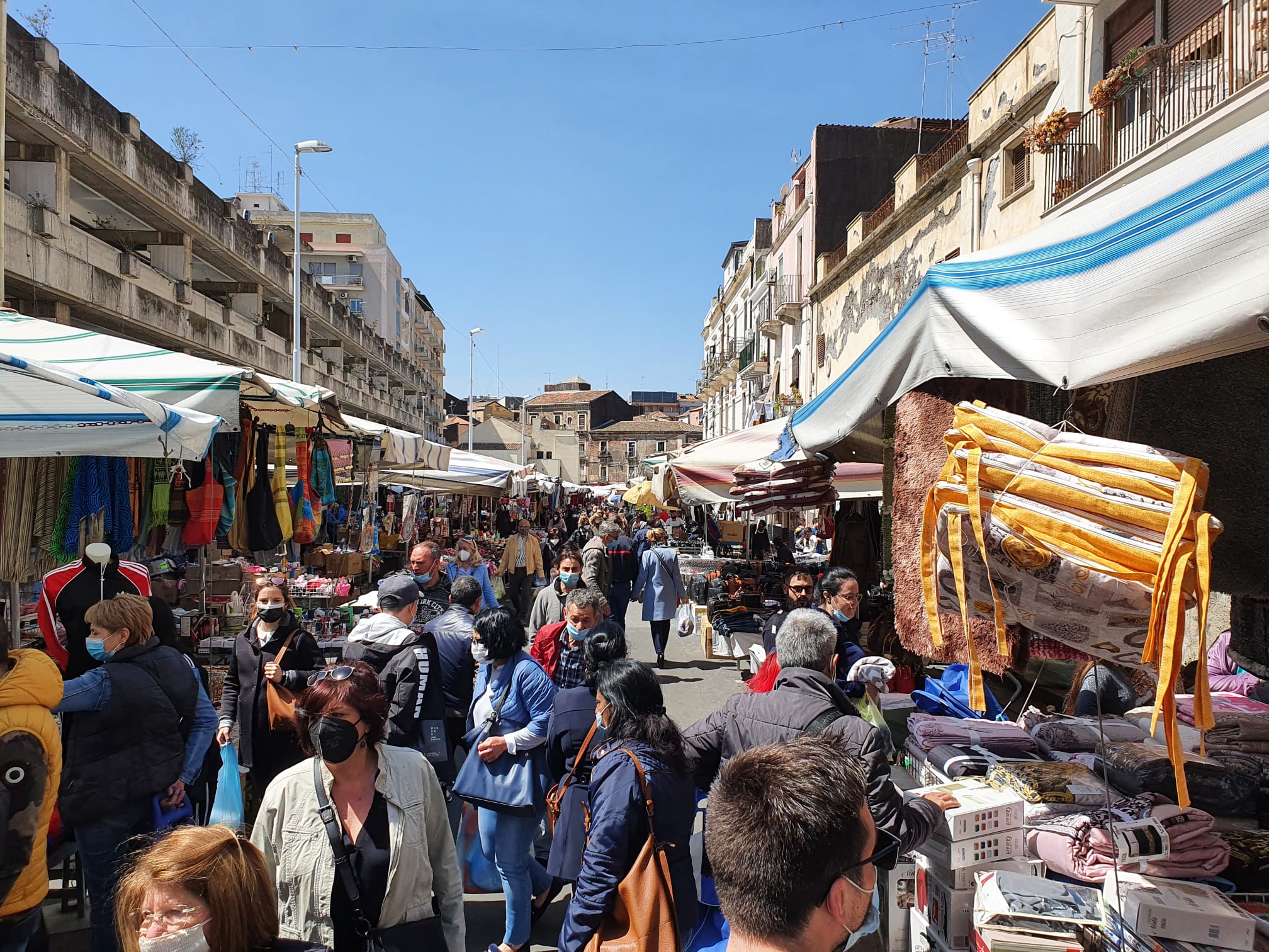 I risultati sono sotto gli occhi di tutti, il video che abbiamo girato questa mattina al mercato centrale di Catania (“a fera o luni”, come è conosciuta da tutti i catanesi), e che potete vedere qui sopra, parla chiaro: un grande assembramento di gente, tantissimi senza mascherina o comunque con copribocca non indossato correttamente. Controlli inesistenti, solo una ragazza che passa in mezzo alla gente invitando a indossare la mascherina e a rispettare il di stanziamento.