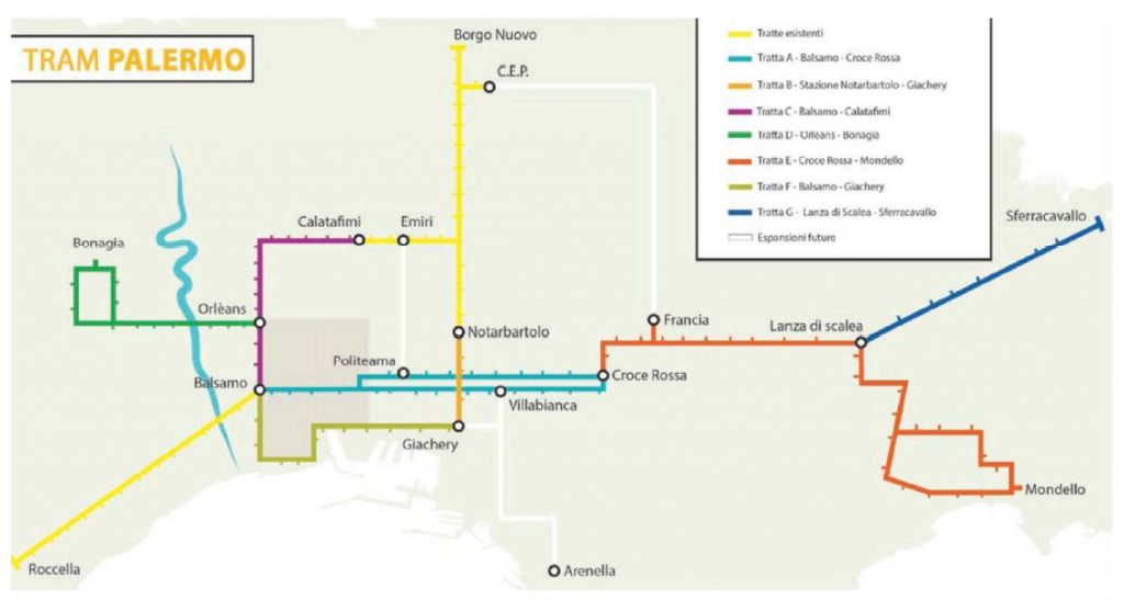 Rimangono nel cassetto, almeno per il momento, le altre quattro linee (che costerebbero quasi mezzo miliardo): la D (Orleans – Policlinico – Bonagia), la E (Croce Rossa – Zen – Mondello), la F (piazza Giachery – Stazione Centrale) e la G (via Lanza di Scalea – Sferracavallo).