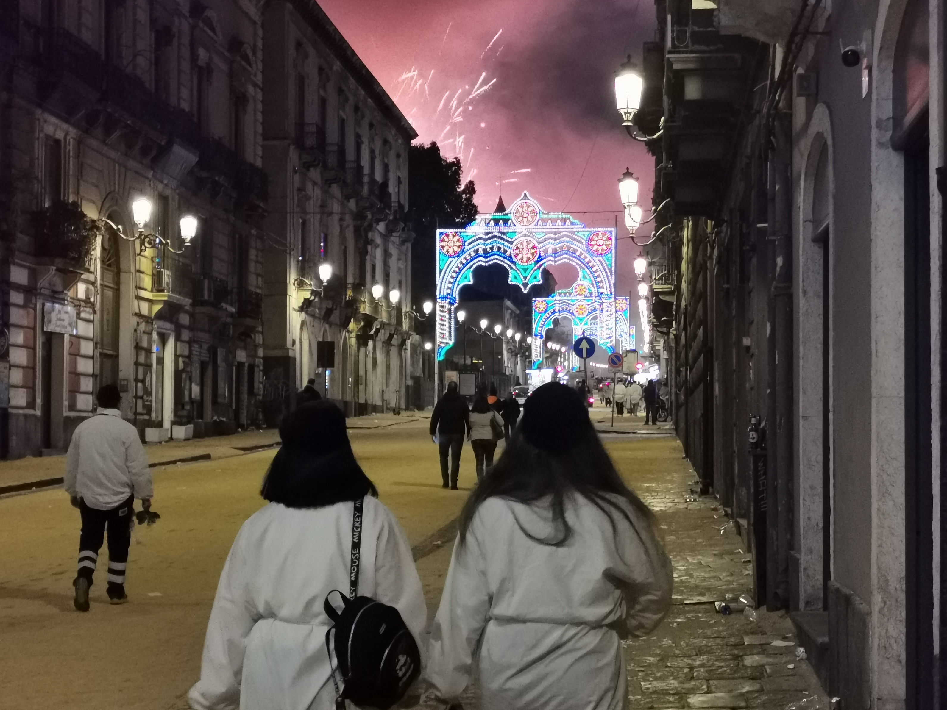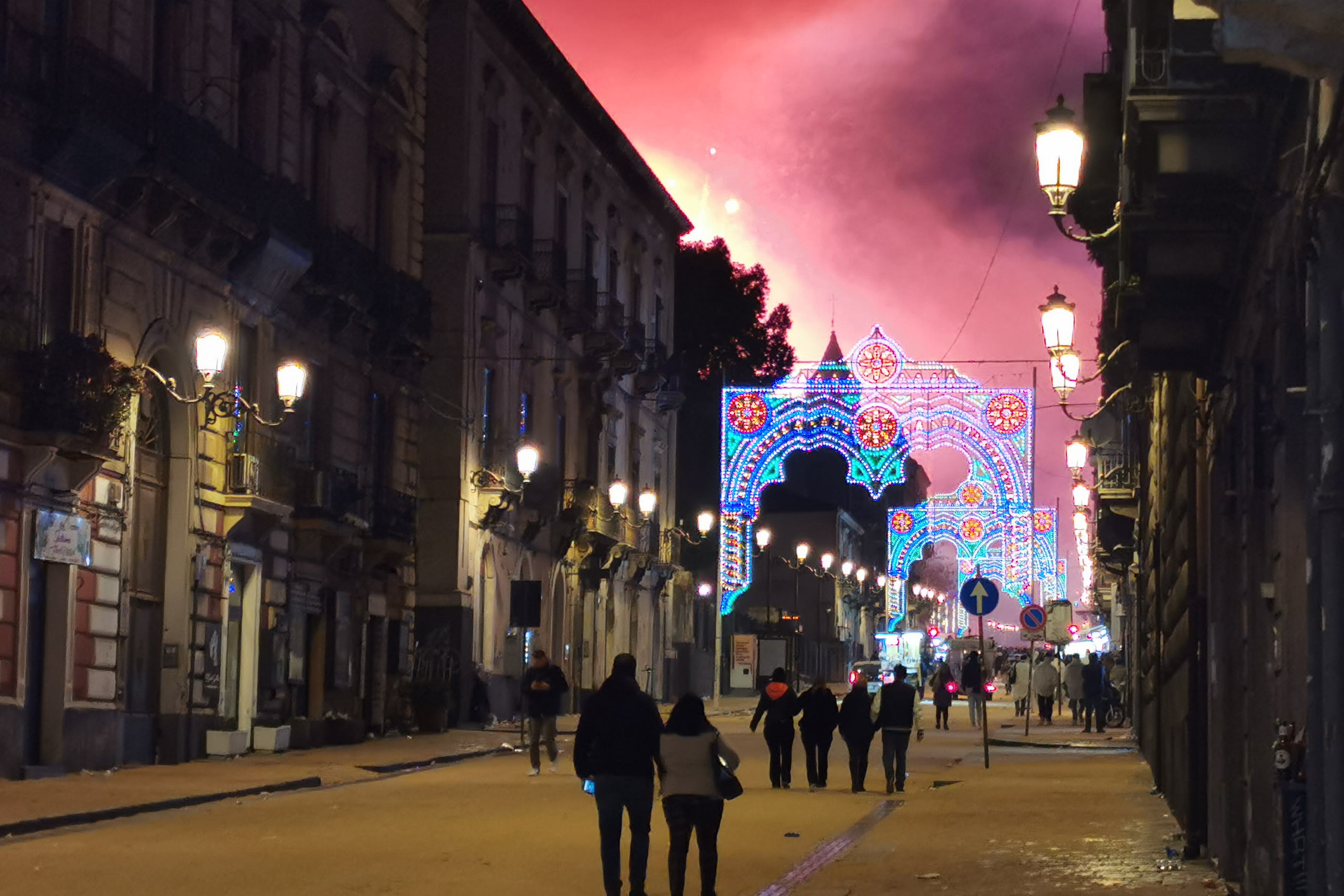 Dopo la lunga passeggiata in via Etnea, ecco che alle 5.58 la Santa giunge a piazza Cavour: qui gli attesissimi fuochi del Borgo di Sant’Agata 2024, conclusi alle 6.20.
