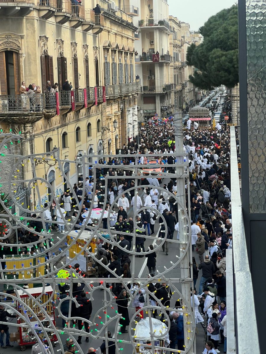 Dopo una breve sosta, il Fercolo di Sant’Agata riprenderà il suo giro interno per la salita di San Giuliano. Uno dei momenti più significativi della festa.