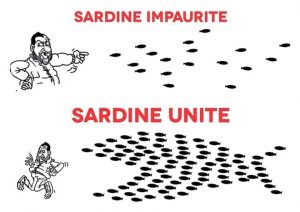 Forse ci speravano, ma certo non se lo aspettavano, i quattro ragazzi bolognesi, che nei giorni scorsi hanno chiamato a raccolta in piazza Maggiore nel nome delle sardine, sembrano riusciti nell’impresa di diffondere il loro marchio: dopo il successo della manifestazione bis di Modena, iniziative analoghe si stanno autorganizzando in molte parti d’Italia, da Reggio Emilia a Palermo, da Roma a Bari, da Sorrento a Catania.