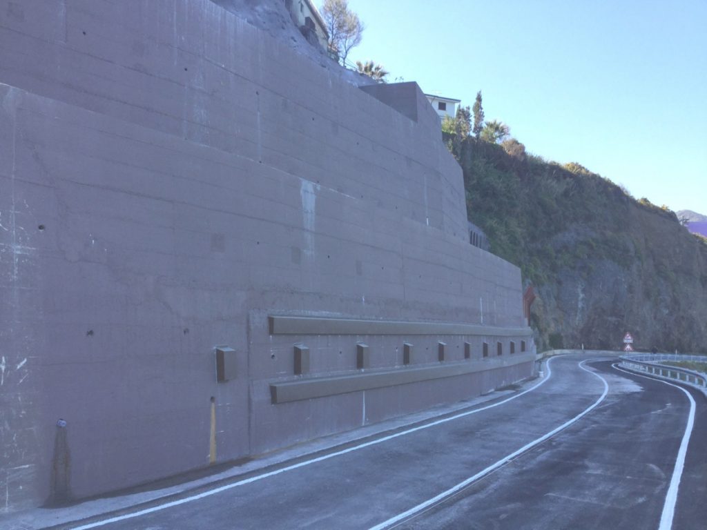 L’intervento ha comportato l’installazione di una struttura di protezione costituita da un sistema geotessile e da una rete metallica, ancorata sia orizzontalmente che verticalmente, opportunamente dimensionata al fine di contenere eventuali futuri distacchi.
