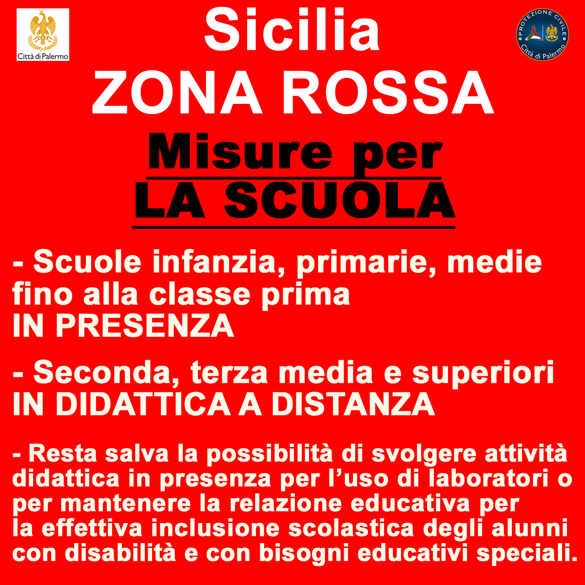 Alcune grafiche sulle misure che verranno adottate in Sicilia, con l’entrata in vigore della zona rossa dalla mezzanotte di questa sera per due settimane (fino a domenica 31 gennaio).