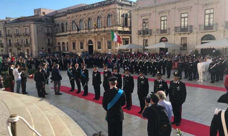 SIRACUSA – Presso la sede del Comando provinciale di Siracusa, si è svolta la celebrazione del 206° anniversario della fondazione dell’Arma dei Carabinieri. La celebrazione, tenuto conto della situazione sanitaria nazionale correlata al Covid-19, ha visto la deposizione di una corona d’alloro da parte del comandante provinciale, colonnello Giovanni Tamborrino, accompagnato dal prefetto di Siracusa, Giusi Scaduto, presso la targa in onore dei Caduti dell’Arma all’ingresso della caserma di viale Tica. La cerimonia è stata l’occasione per fare il punto dei principali indicatori di delittuosità e azione di contrasto nel periodo compreso fra giugno 2019 e maggio 2020. L’attività preventiva dispiegata dall’Arma ha fatto registrare, nei 12 mesi presi in esame, ben 25.311 servizi esterni, con una proiezione sul territorio pari a 129.156 ore, con un incremento del 31% rispetto all’analogo periodo precedente.