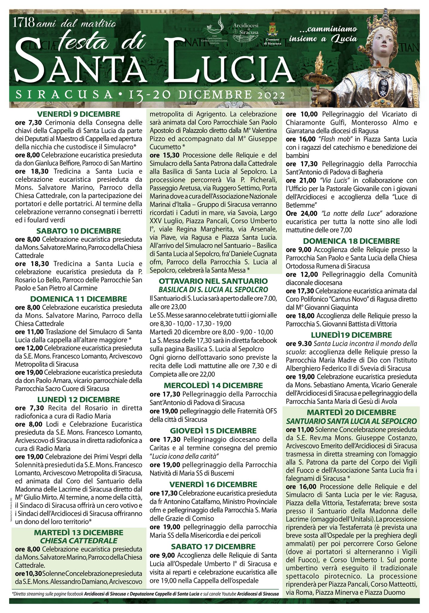 E’ possibile consultare qui il programma per la Festa di Santa Lucia a Siracusa.