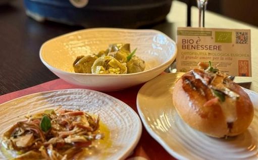 Parallelamente, nel corso delle giornate di promozione, i ristoranti hanno proposto menu stagionali e tematici in cui il carciofo, in particolare, ha avuto un ruolo centrale nei mesi primaverili. Protagonista assoluto della cucina romana e simbolo di stagionalità, è stato valorizzato attraverso interpretazioni sia tradizionali che innovative, capaci di esaltare la qualità e la versatilità dell’ortofrutta biologica certificata europea. Dai tagliolini carciofi e guanciale alla lasagna con patate e carciofi bio, dal carciofo ripieno di baccalà mantecato alla polpetta di patate e carciofo, fino alla sorprendente tartare con carciofo crudo e al bignè salato farcito con crema al carciofo: ogni proposta ha contribuito a costruire un’esperienza sensoriale e culturale, capace di esprimere in modo concreto e quotidiano il significato profondo di una filiera biologica certificata, vicina alla terra e alle persone. SpaccioVino, in particolare, ha conquistato i palati dei suoi clienti con abbinamenti creativi che hanno saputo esaltare il gusto del carciofo in modo inaspettato, come il maritozzo salato con carciofi marinati alla menta e spuma di Pecorino, che ha unito semplicità e originalità in un perfetto equilibrio tra cucina, territorio e stagionalità.