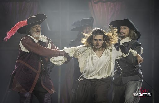 L’adattamento di Peparini parte da una scena di fabbrica, grigia e spersonalizzante, per aprirsi in un mondo epico e romantico. A guidare il pubblico nel cuore dell’avventura, un trio che ha già fatto la storia del musical italiano: Giò Di Tonno (Athos), Vittorio Matteucci (Porthos), Graziano Galatone (Aramis), affiancati da Sea John (D’Artagnan), Camilla Rinaldi (Milady), Beatrice Blaskovic (Costanza) e un cast giovane e talentuoso che dà corpo a un racconto ricco di passione, vendetta, amore e onore.