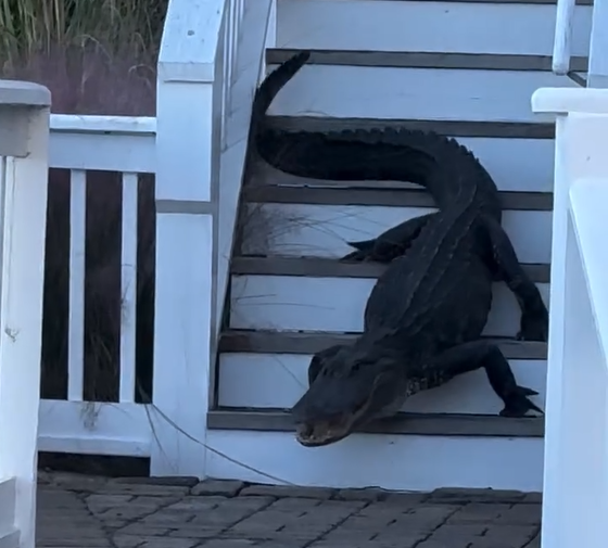 In un video diffuso sui canali social, diventato subito virale, si vede l’animale scendere i gradini dell’abitazione. Raggiunto il secondo piano, l’alligatore è riuscito a scalare ben sedici gradini per poi, curioso e guardingo, scendere e allontanarsi nella palude nei pressi della casa. Nessuna conseguenza fisica per gli inquilini della casa, solo tanta paura.