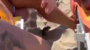 Nelle immagini, tra gambe, piedi, costumi e lettini, spunta l’animale che, sulla sabbia, stava cercando una via di fuga per non essere bloccato.