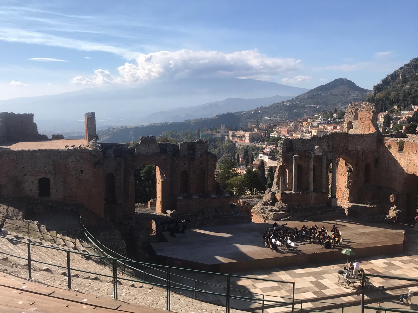 Per la cronaca, l’Orchestra a plettro Città di Taormina, istituzione che nel 2020 ha compiuto i 110 anni di attività, ha schierato sul palco del Teatro Antico, diretti dal maestro Antonino Pellitteri, 27 elementi, la più giovane appena maggiorenne, il più anziano con 81 primavere alle spalle, che usano solo strumenti a plettro come mandolino, mandola, mandoloncello, chitarra e contrabbasso.