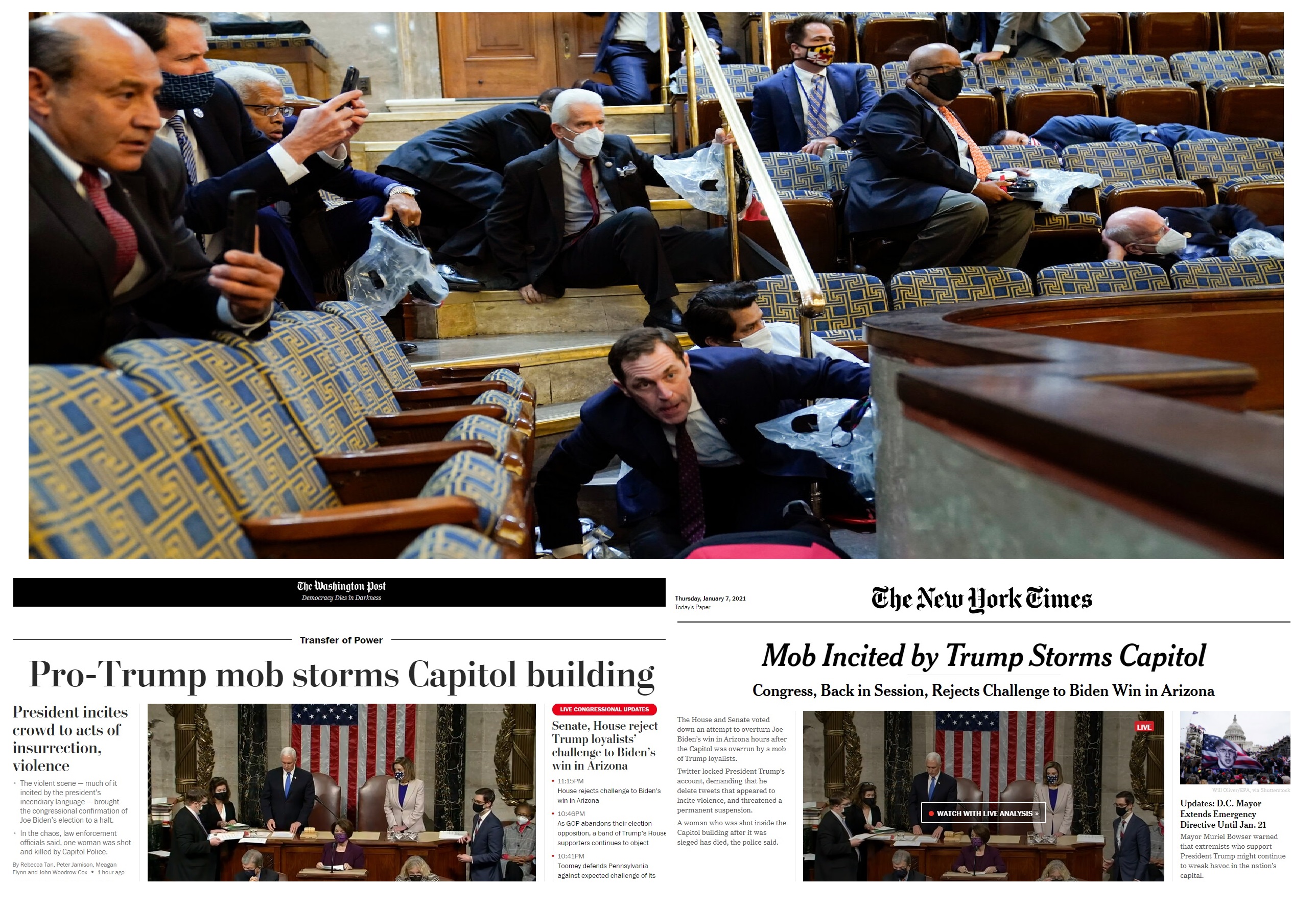 Fermo restando che, stamane, il Congresso ha certificato la vittoria del candidato democratico Joe Biden nelle presidenziali, a riassumere quanto avvenuto negli Usa nelle ultime ore bastano i titoli del Washington Post e del New York Times: “Il mob pro-Trump prende d’assalto il Campidoglio” e “Il mob scatenato da Trump assale il Campidoglio. Il Congresso, di nuovo in seduta, rifiuta la sfida a Biden in Arizona”.