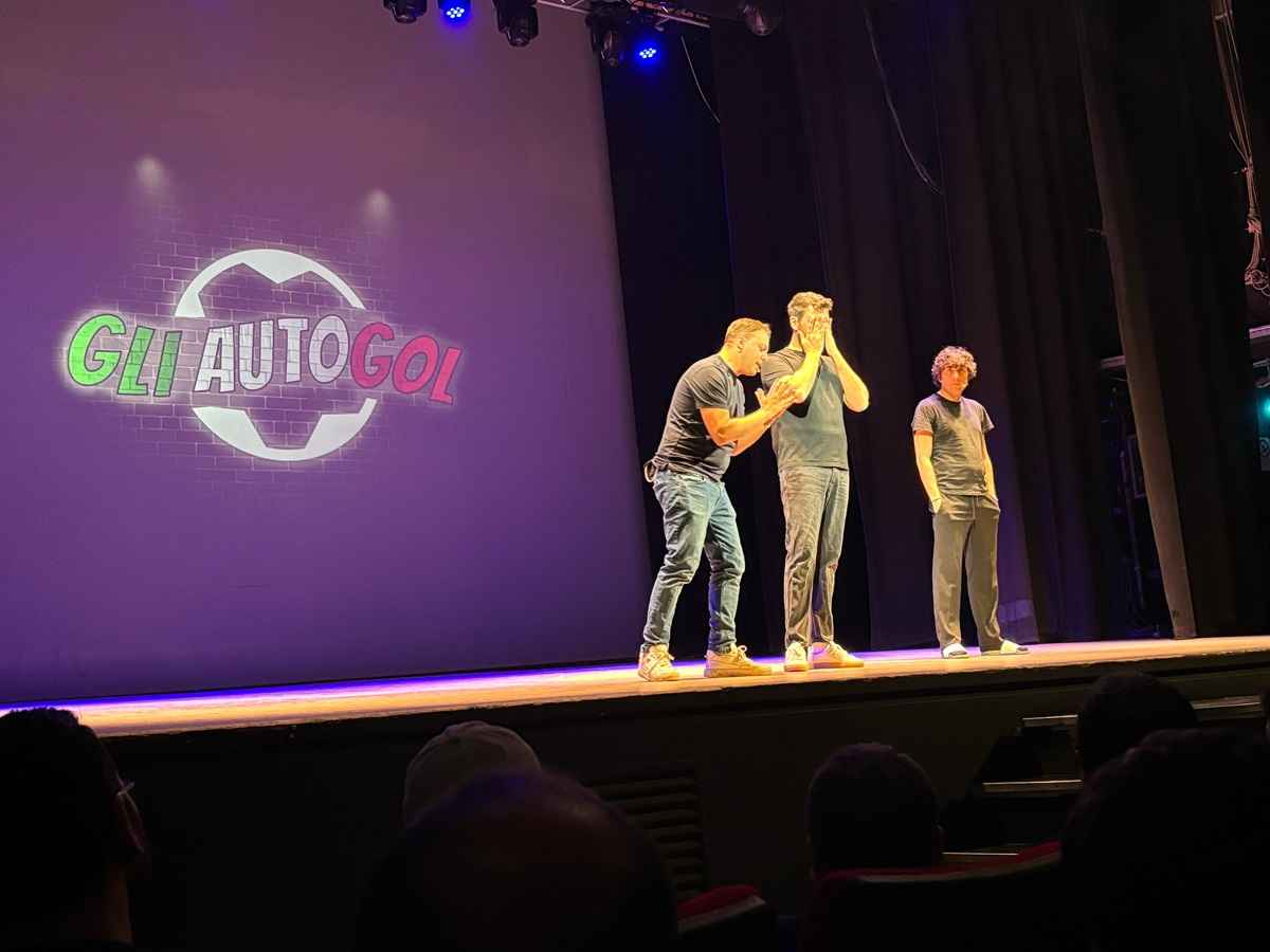 Risate e divertimento ieri sera al “Teatro Ambasciatori” di Catania in compagnia de “Gli Autogol”. Il trio comico composto da Michele Negroni, Alessandro Iraci e Alessandro “Lollo” Trolli, esploso sul web nel 2013, ha portato in scena “Calcio Spettacolo”, esibendosi nelle imitazioni del repertorio e in gag esilaranti dedicate al mondo del calcio e dello sport.