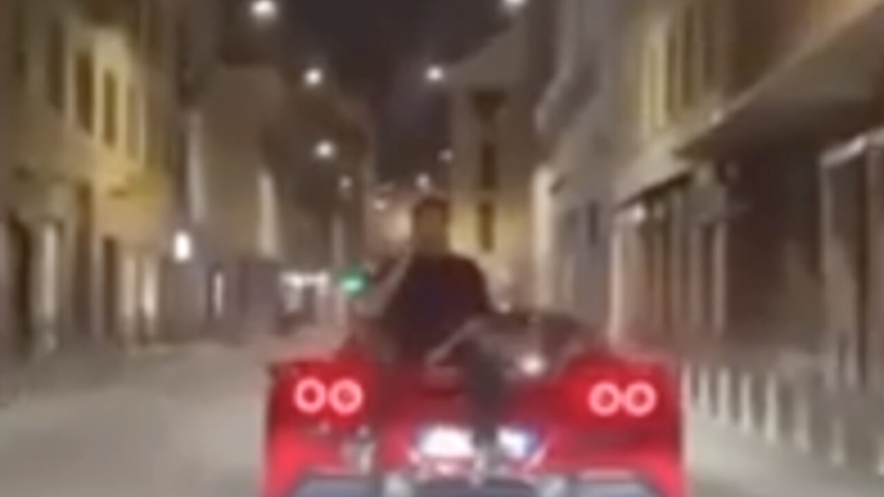 VIDEO | Follia in strada: parla al telefono seduto sul cofano di una Ferrari