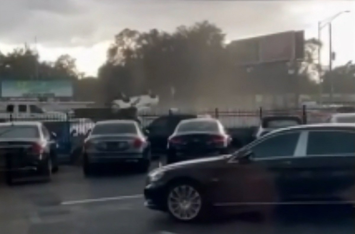 L’evento ha avuto un impatto significativo su Beach Boulevard, dove ha addirittura sollevato un pick-up da un concessionario di auto, sfiorando il traffico in arrivo.